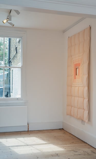 There's a professional hanging system - wall-hung works hang from a ceiling rail on transparent cords.